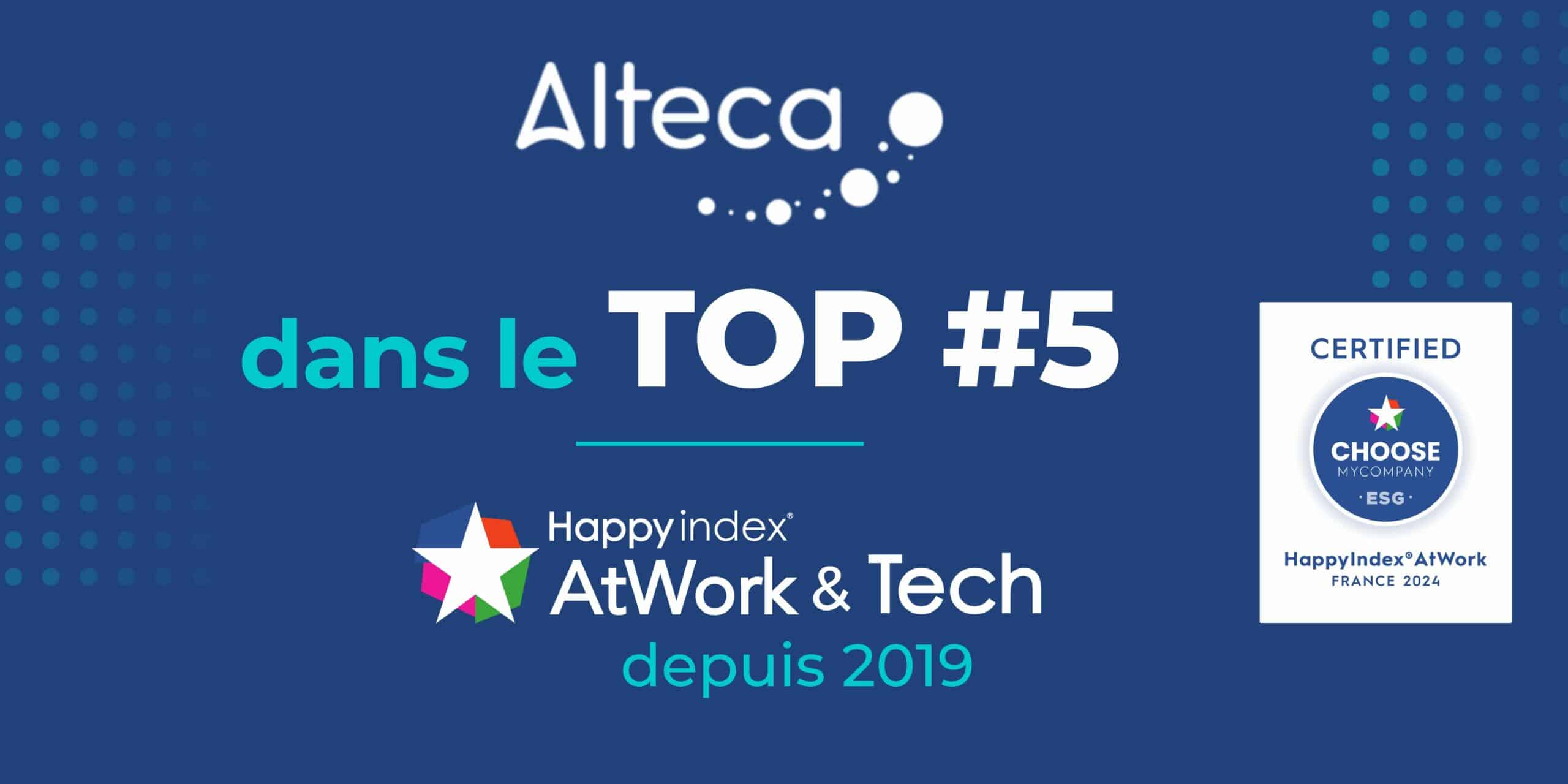 Alteca se classe cette année à la 5ème position des entreprises de 500 à 999 salariés où il fait bon travailler, selon le classement Happy at Work établi par le cabinet indépendant ChooseMyCompany. Pour la 4ème année consécutive, Alteca figure dans le top 5 de ce classement !